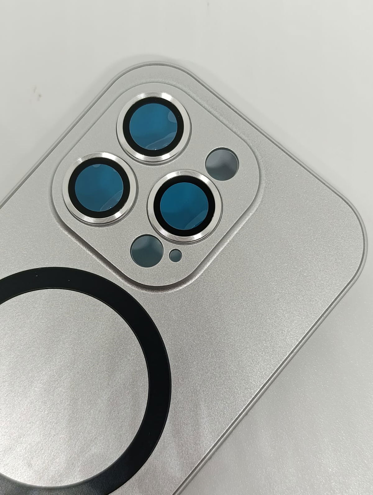 Borde ligeramente elevado que mantiene la pantalla y la cámara alejadas del contacto con superficies.
