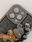 Incluye un osito de peluche 3D en color negro con textura tejida y un pequeño corazón naranja en la nariz.