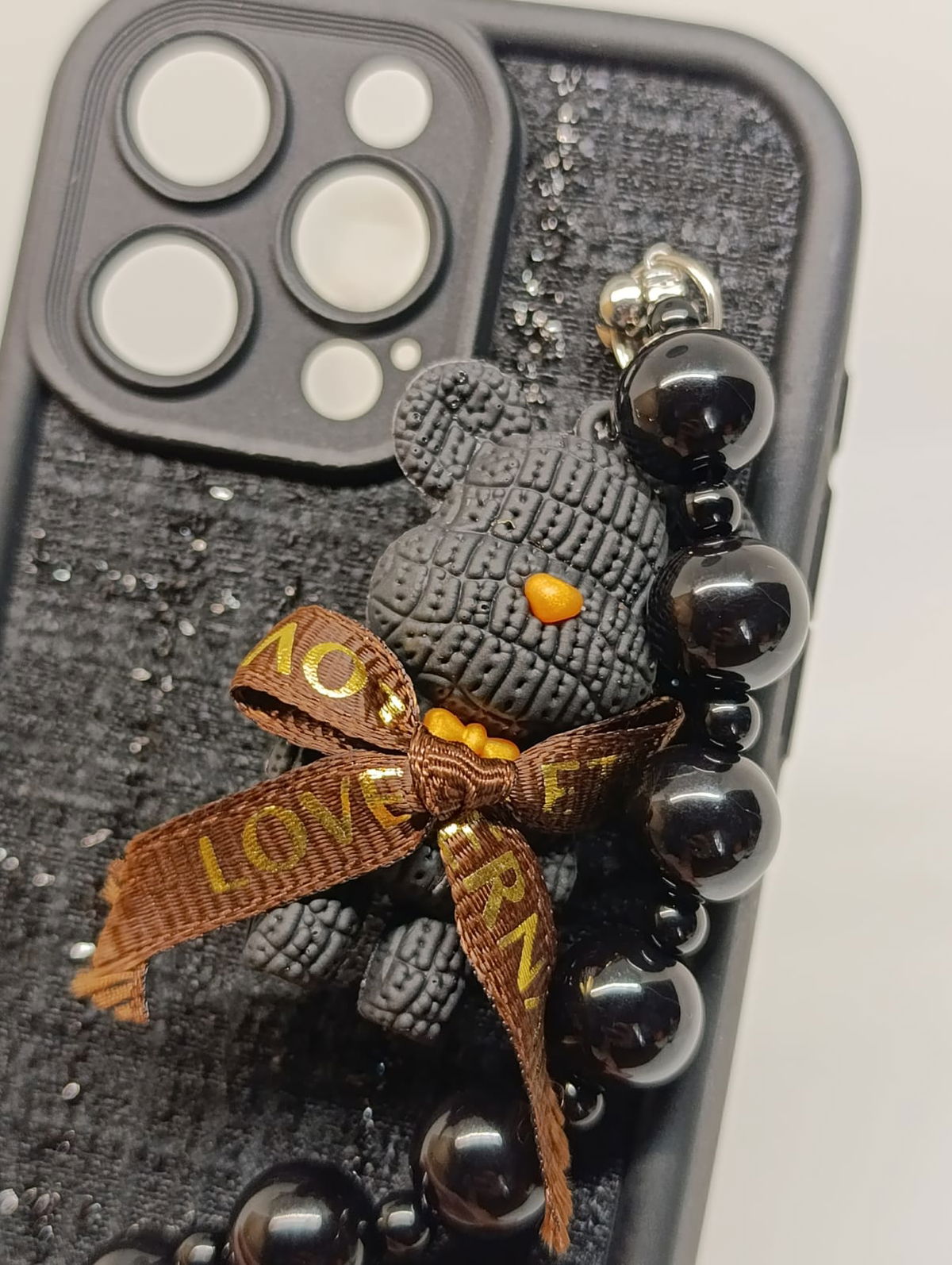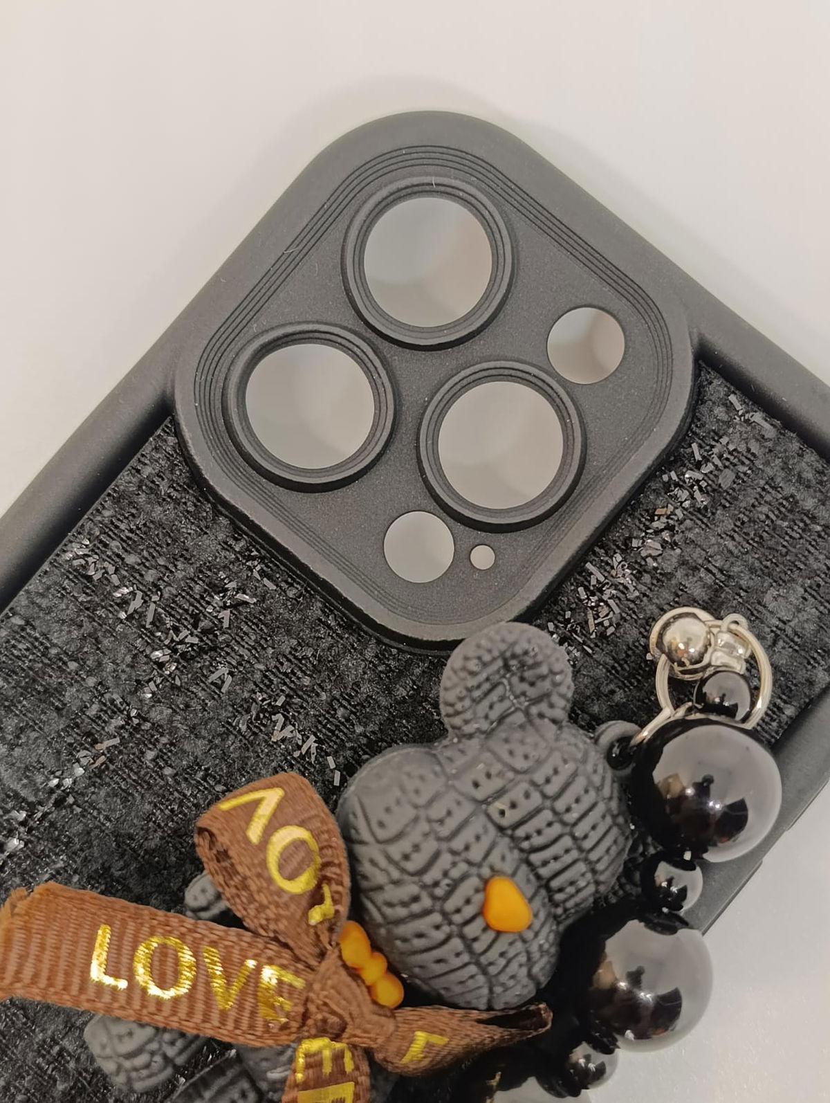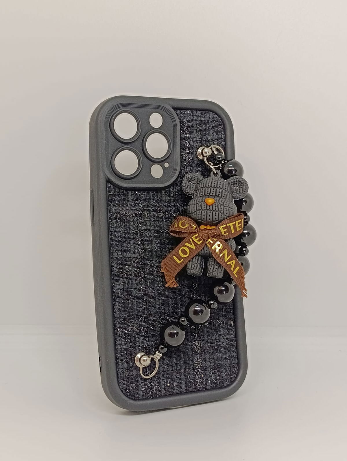 Equipada con una práctica y estilosa cadena de cuentas negras brillantes, no solo añade un accesorio de moda, sino que también sirve para prevenir caídas accidentales. Proporciona una protección robusta contra golpes, arañazos y polvo. Los bordes elevados protegen la pantalla y el módulo de la cámara.