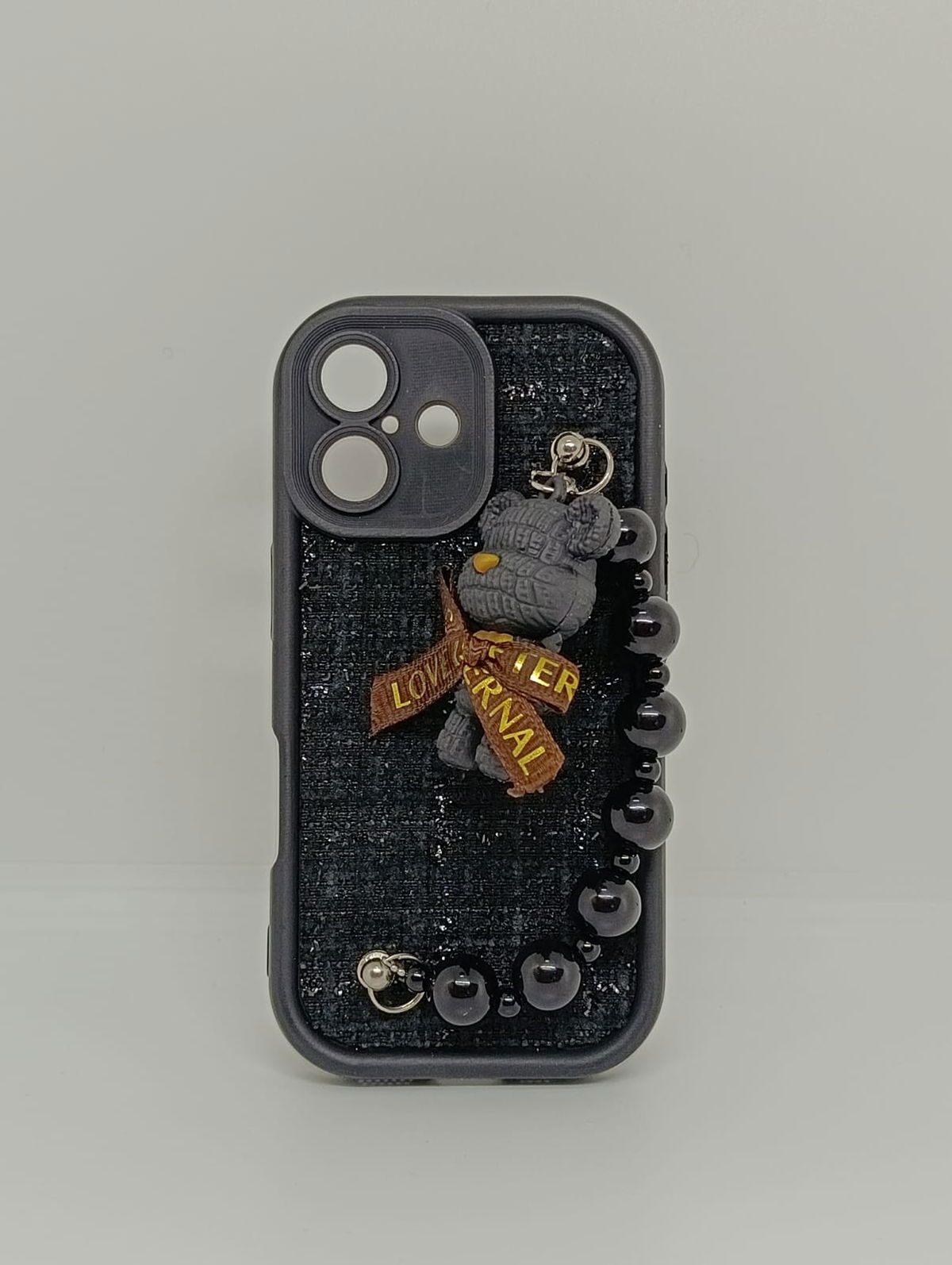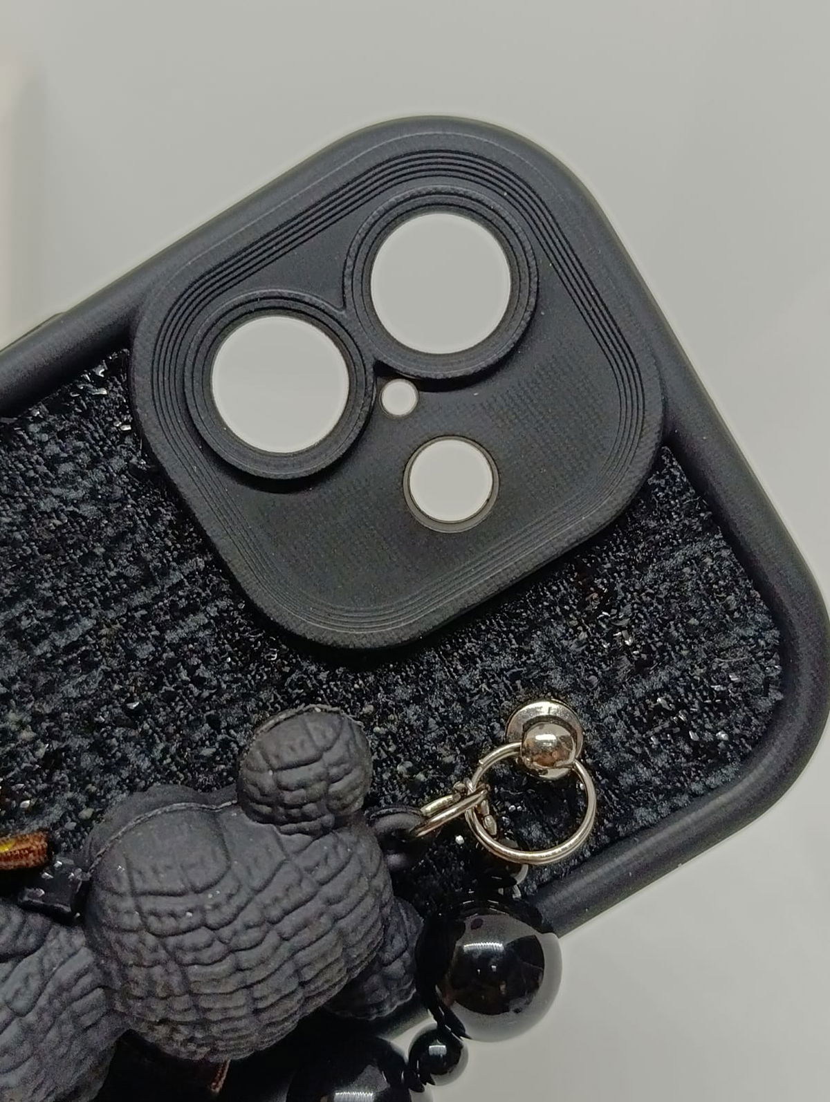 Equipada con una práctica y estilosa cadena de cuentas negras brillantes, no solo añade un accesorio de moda, sino que también sirve para prevenir caídas accidentales. Proporciona una protección robusta contra golpes, arañazos y polvo. Los bordes elevados protegen la pantalla y el módulo de la cámara.