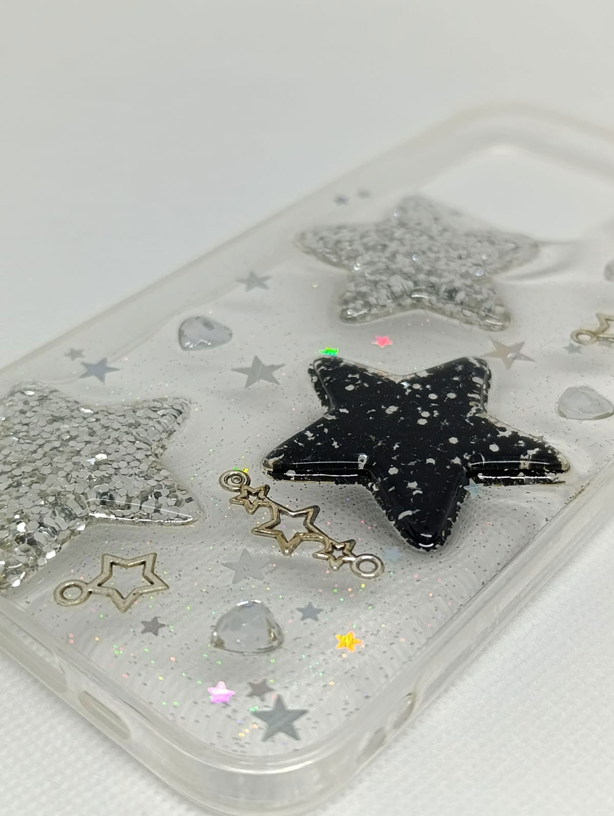 Con diseño de estrellas y purpurina, que resaltan las texturas.