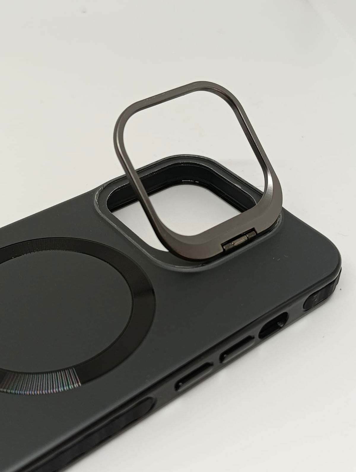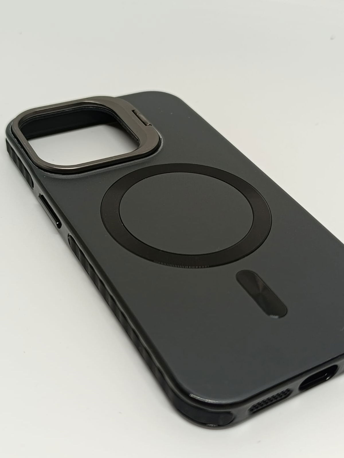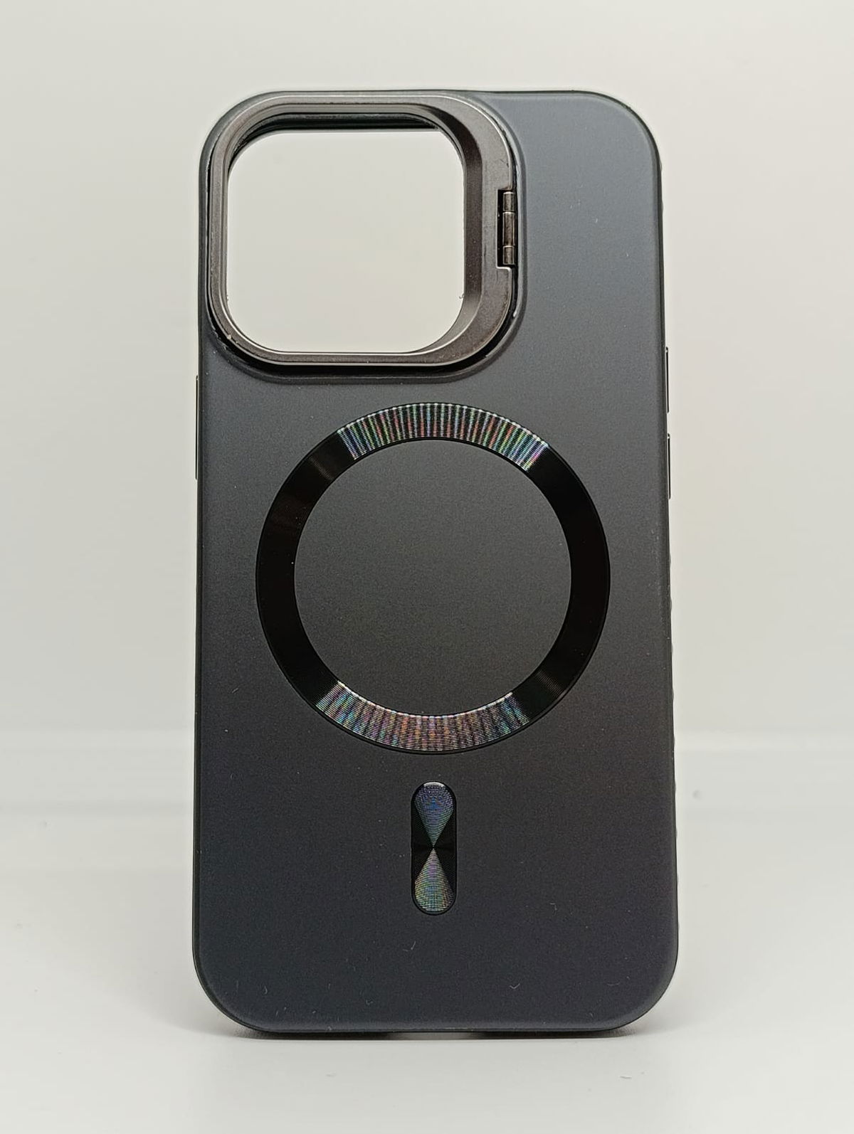 Eleva la estética de tu equipo con nuestra funda Magsafe, con bisel metálico y carga magnética. Diseñada para quienes buscan robustez sin sacrificar estilo ni minimalismo, esta Case combina un acabado mate suave al tacto, que repele manchas y huellas dactilares, con detalles de aluminio pulido en el anillo magnético y en el protector de cámara que sirve como soporte también. Su interior suave y refinado logra proteger de microrayaduras el cuerpo del equipo.