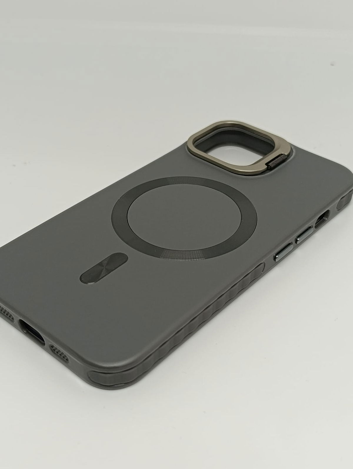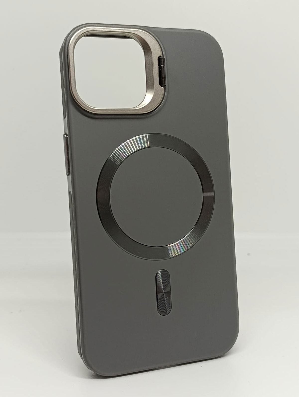 Eleva la estética de tu equipo con nuestra funda Magsafe, con bisel metálico y carga magnética. Diseñada para quienes buscan robustez sin sacrificar estilo ni minimalismo, esta Case combina un acabado mate suave al tacto, que repele manchas y huellas dactilares, con detalles de aluminio pulido en el anillo magnético y en el protector de cámara que sirve como soporte también. Su interior suave y refinado logra proteger de microrayaduras el cuerpo del equipo.