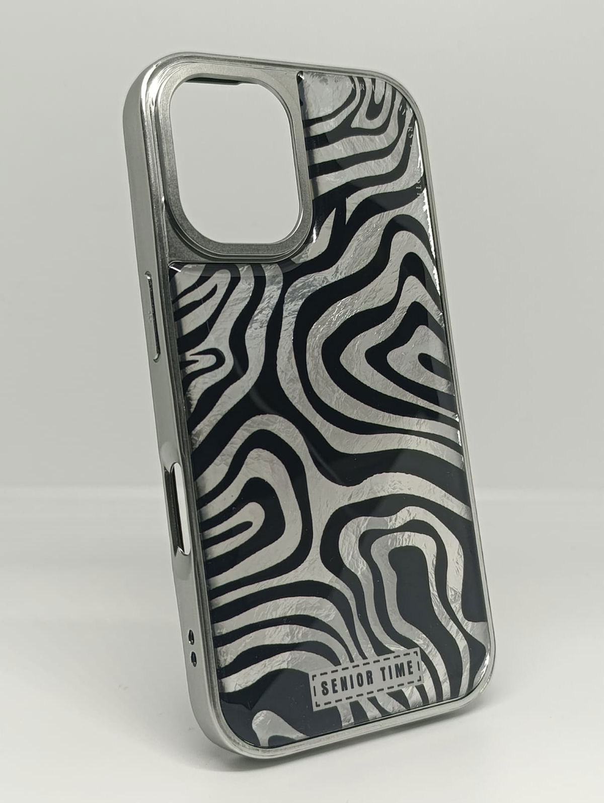 ¿Buscas algo diferente? Esta Case es la combinación perfecta entre arte y tecnología. Su acabado en plata metálica sobre fondo oscuro crea un efecto visual dinámico que no pasará desapercibido. Ofrece un agarre seguro y un look de alta gama.