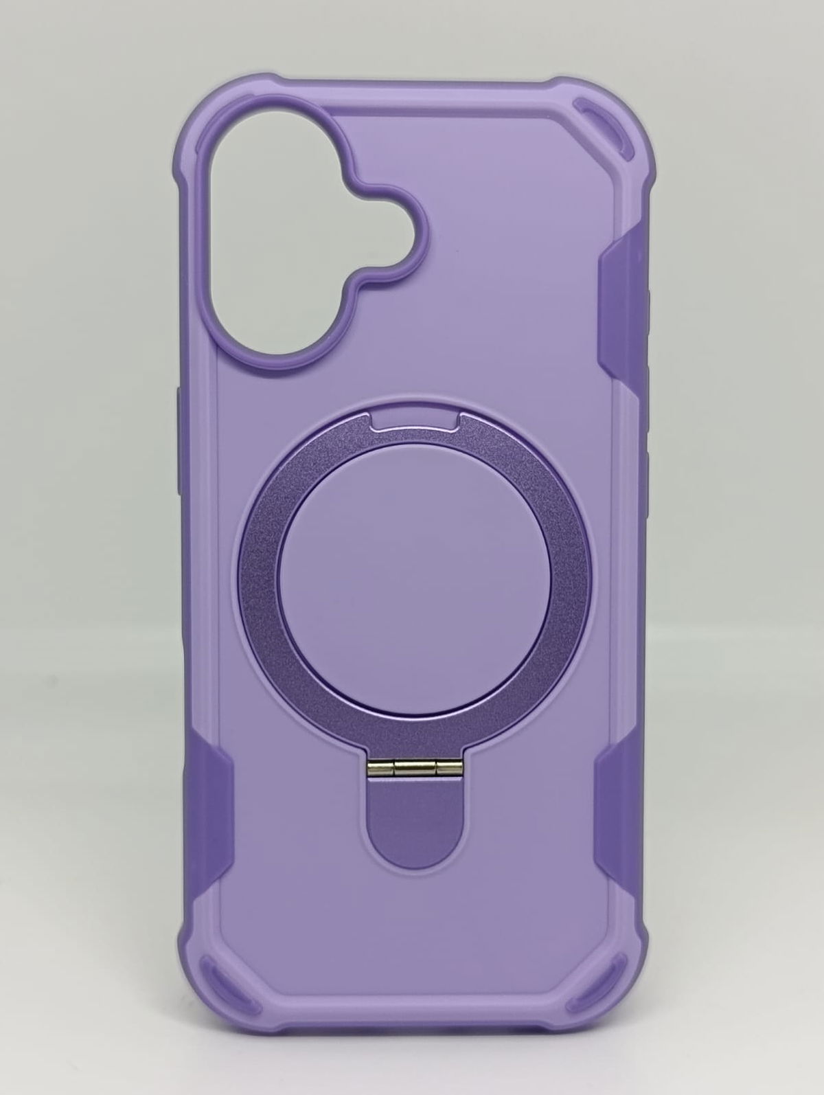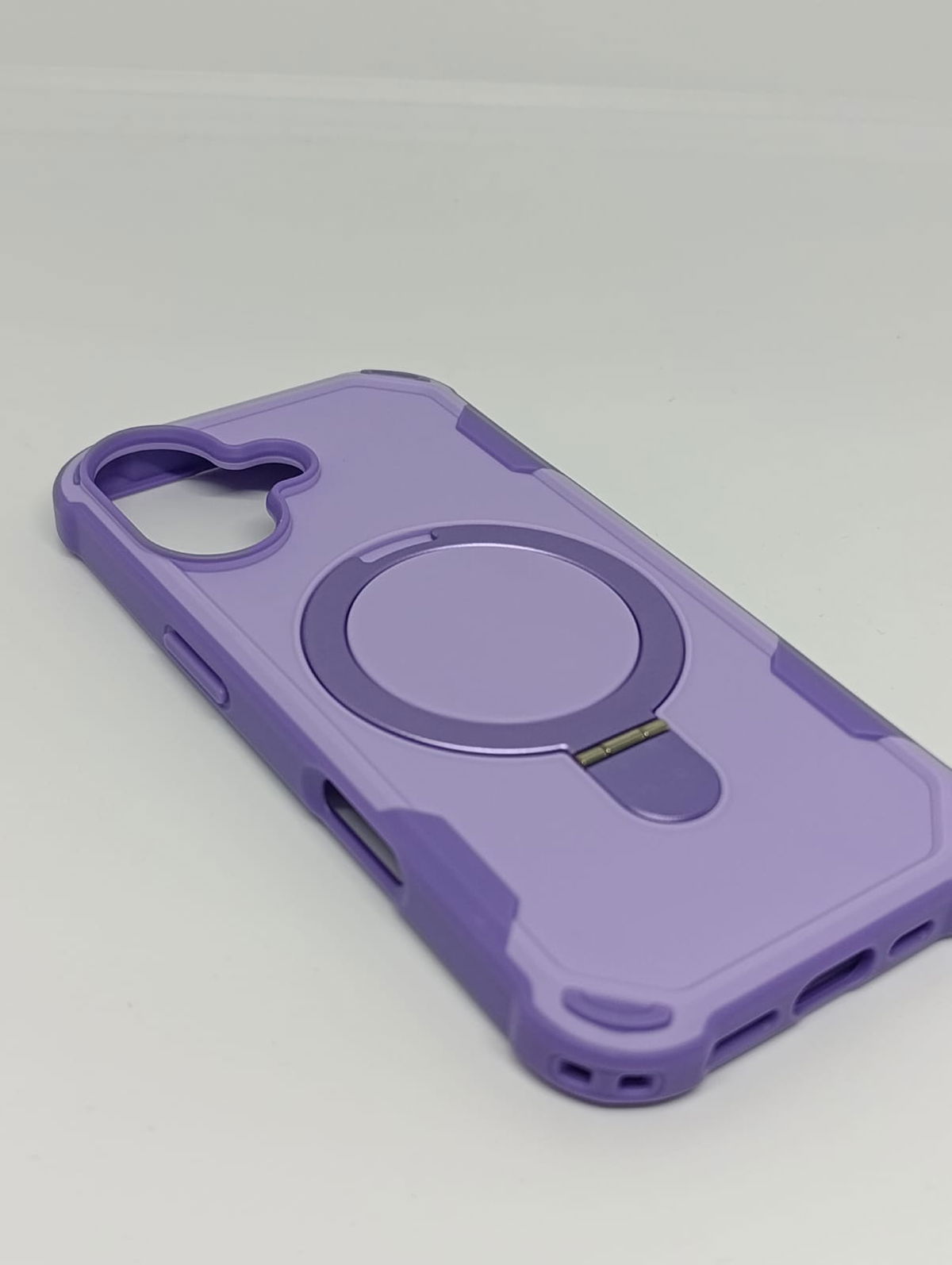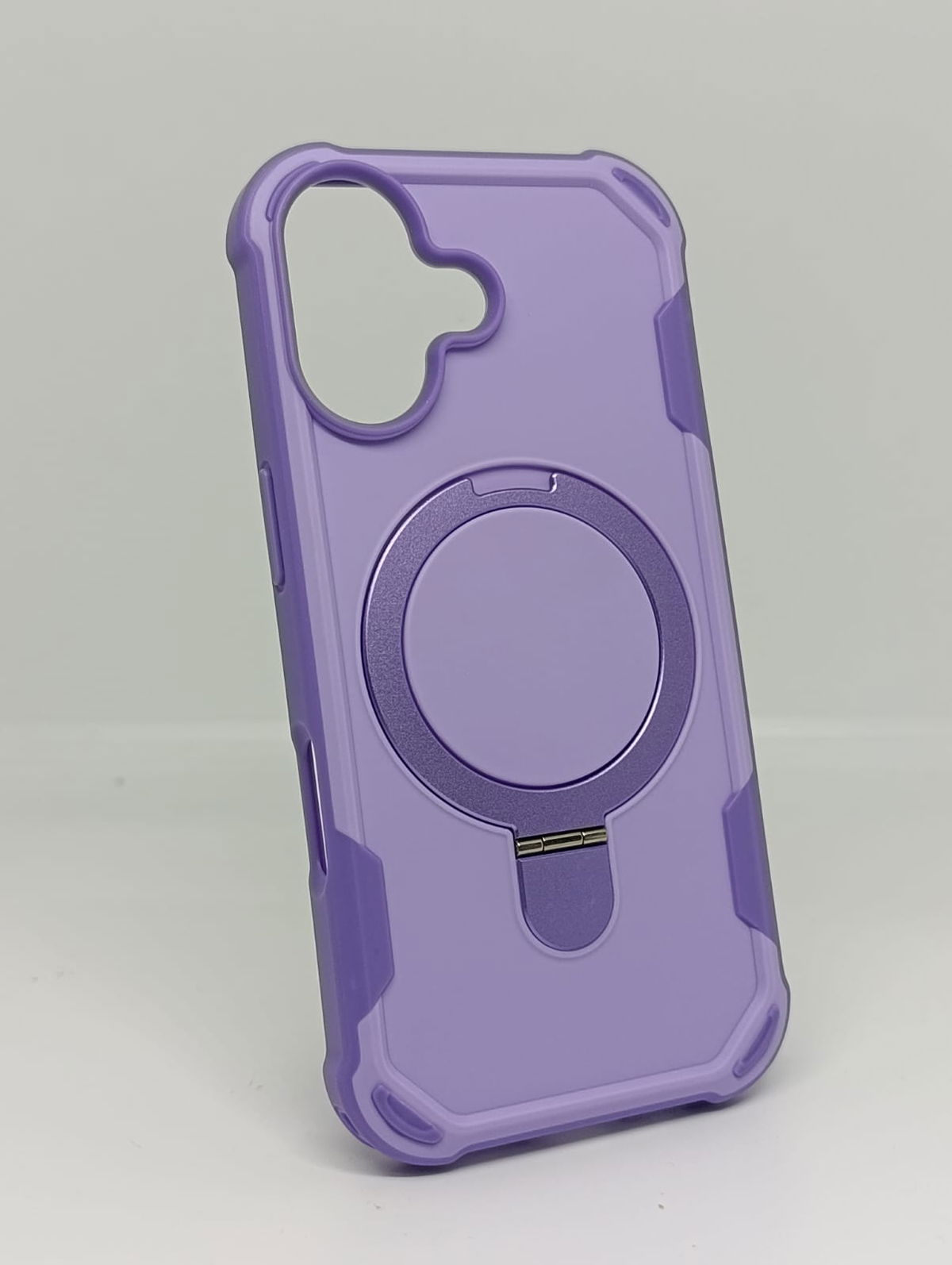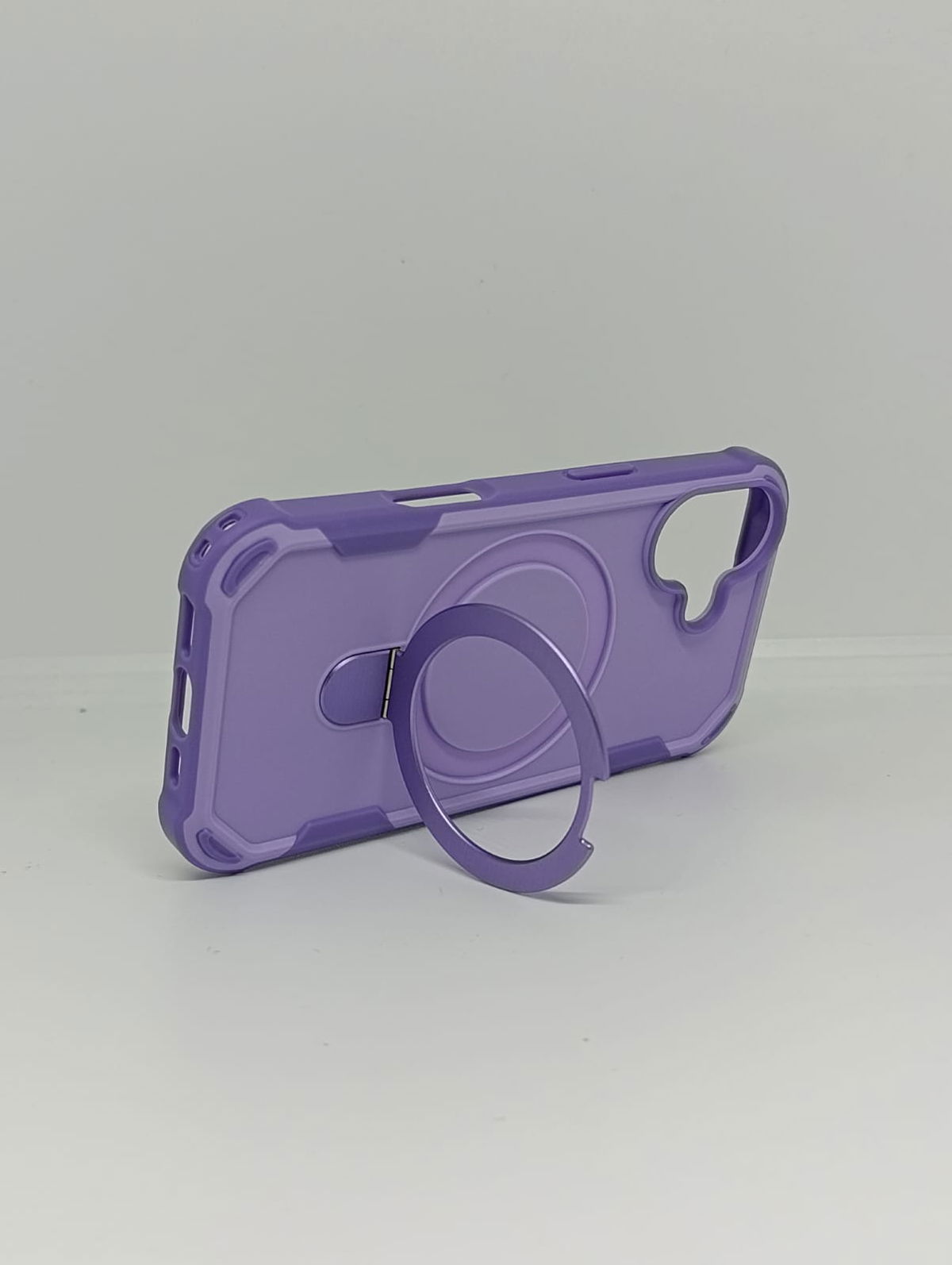 Protege tu dispositivo con estilo y funcionalidad superior. Esta funda de alta resistencia no solo es compatible con cargadores y accesorios MagSafe, sino que integra un elegante anillo metálico desplegable.