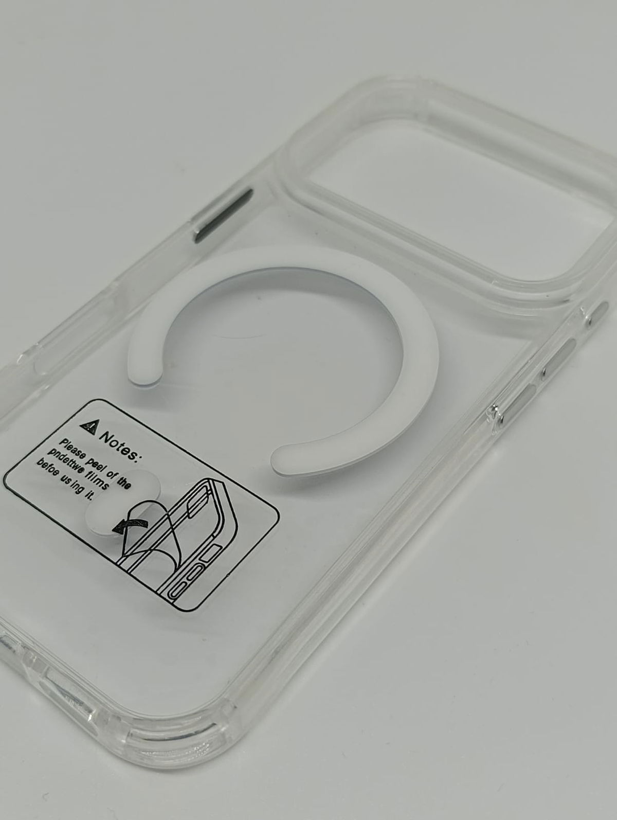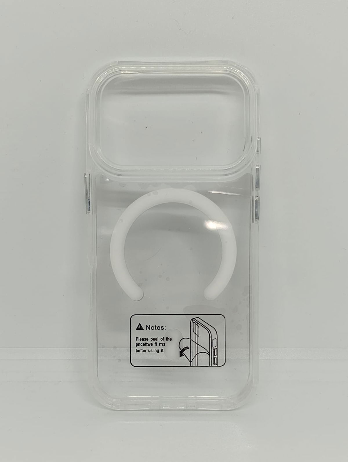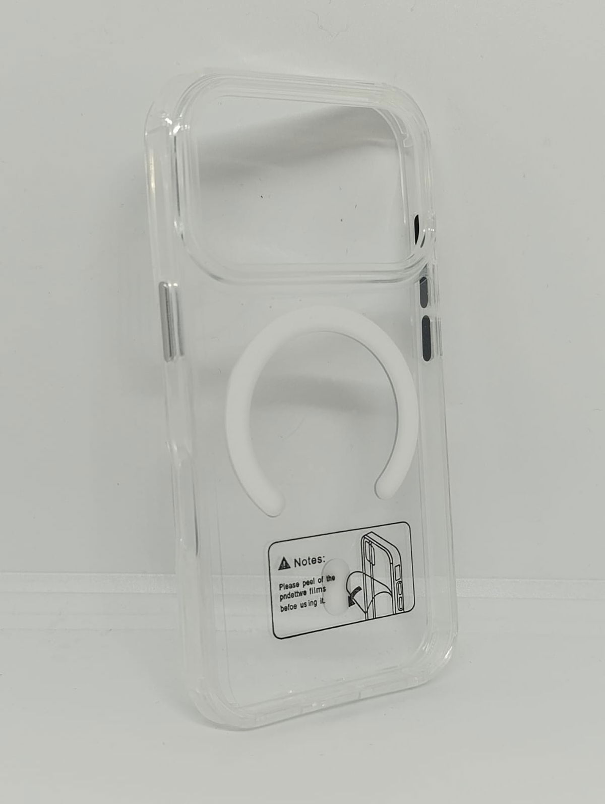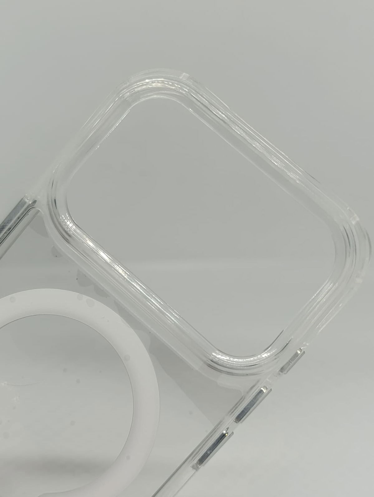 Luce el color original de tu smartphone con nuestra funda transparente de alta resistencia. Diseñada con un anillo magnético integrado, es totalmente compatible con cargadores MagSafe, carteras y soportes para auto.